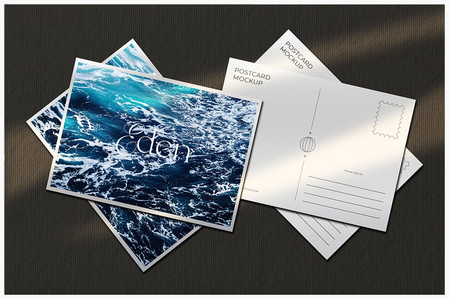 用这款**艺术感十足的俯视明信片样机**来讲述你的故事吧。几张**明信片**随意地散落在**深色纹理布料表面**上,在**柔和的戏剧性摄影棚灯光**的映衬下,投射出轻柔的阴影,凸显出每一张明信片的边缘和细节——非常适合旅行收藏、婚礼请柬或充满创意、个性化且手工制作的文具。