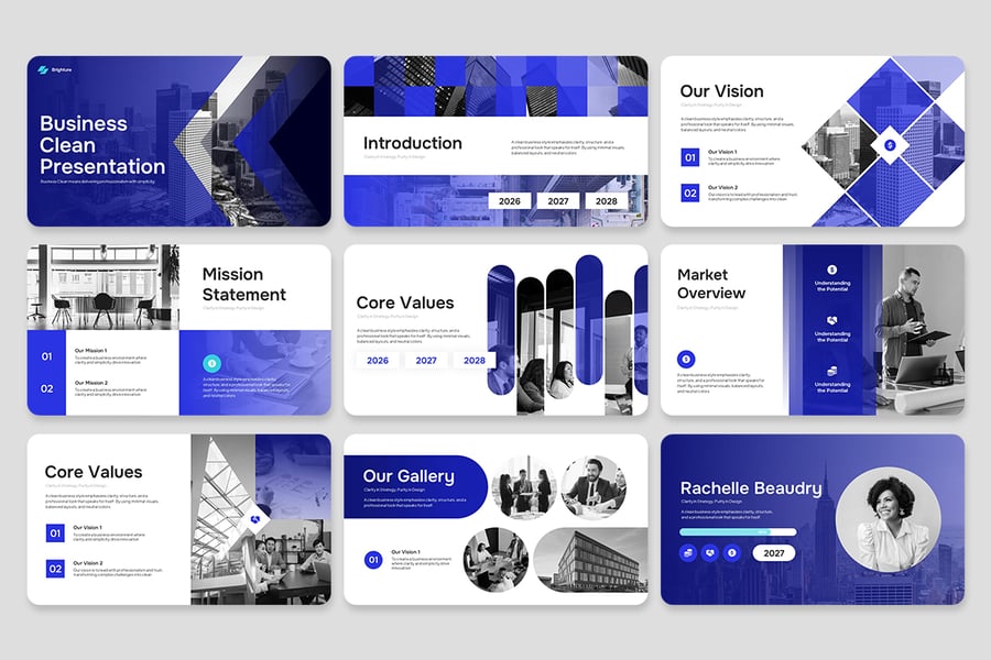 在当今竞争激烈的商业环境中,好的推介和卓越的推介之间的区别往往在于表达方式。此模板可助您脱颖而出,讲述引人入胜的营销故事,并赢得信任。无论您是推介营销计划、汇报营销绩效,还是展示市场进入策略,此工具包都能为您提供所需的结构和视觉效果,从而吸引受众并促成行动。