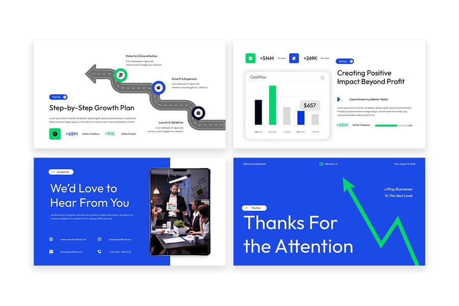 大家好!这是一个**创业公司发展PPT模板**,它采用现代且用户友好的设计,为您的演示文稿增添创意和编辑功能。模板包含易于自定义的颜色和字体,方便您根据自身需求进行调整。**立即下载此模板!**