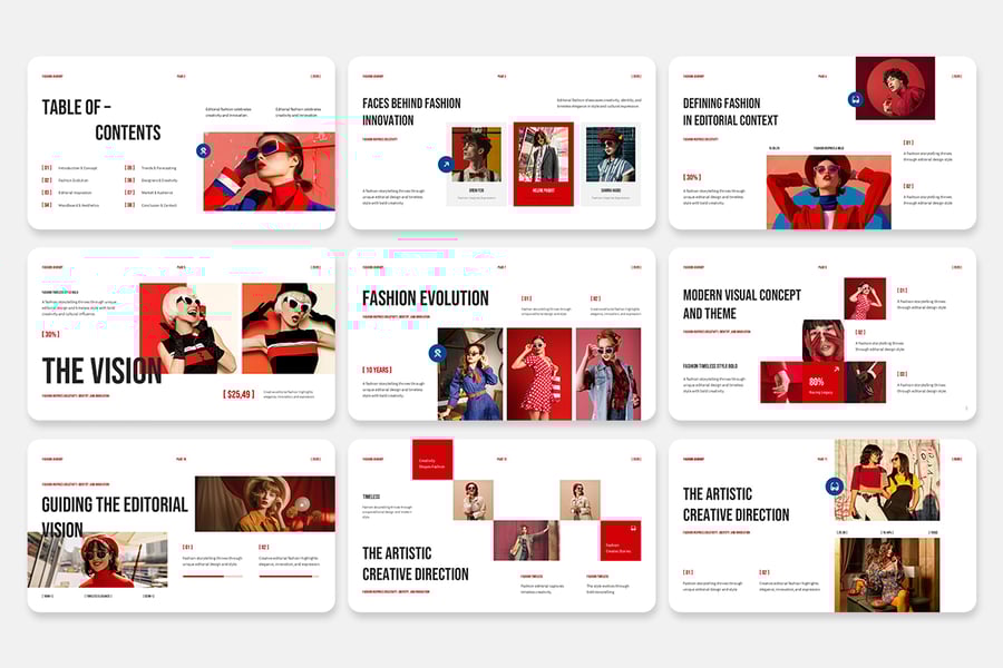 使用这款时尚演示模板,提升您的品牌故事讲述能力。这套简洁现代、高度可定制的幻灯片专为时尚、生活方式和创意企业量身打造。该模板旨在给人留下深刻印象,将您的愿景变为现实,助您呈现一场精彩专业的演示,牢牢抓住所有观众的眼球。