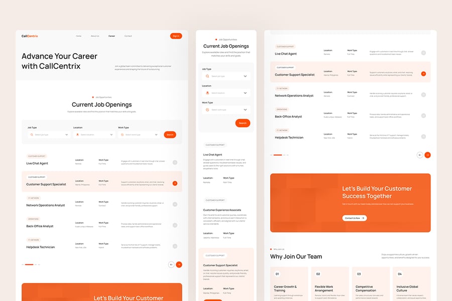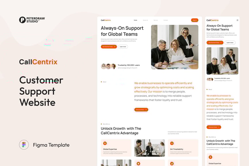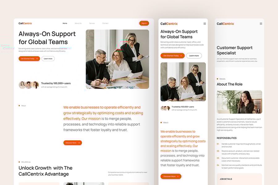 客户支持和外包品牌要想脱颖而出,关键在于展现其可靠性、响应速度和易用性,而 CallCentrix 的设计初衷正是为了即时传达这些优势。其布局清晰地展示了您始终在线的服务、覆盖范围和运营准备情况,无需访客费力查找细节。诸如业绩指标、客户案例和客户评价等建立信任的元素,旨在减少客户的犹豫,帮助决策者更快地建立信心。