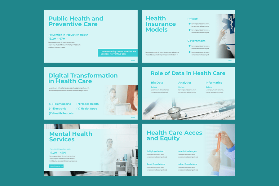 使用**医疗保健 Google 幻灯片模板**,尽情展现您的创意。此模板专为医院、诊所、医疗专业人员和医疗保健机构设计。它采用现代化的布局和可自定义的幻灯片,是展示医疗服务、患者护理项目、研究成果、治疗方案和医疗保健创新成果的理想之选。无论用于专业报告、医学会议还是组织规划,它都能帮助您清晰、可信且有效地传达复杂的医疗保健信息。