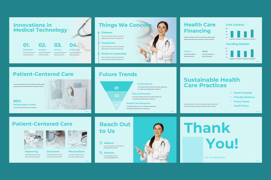 **应用场景:** 医疗模板、医院幻灯片、医生演示文稿、患者护理演示文稿、医疗保健服务模板、临床研究幻灯片、医疗报告演示文稿、健康计划幻灯片、制药演示文稿、医疗行业演示文稿、医疗培训模板、医疗保健管理幻灯片、医院简介演示文稿、公共卫生演示文稿、生物技术幻灯片、医疗保健业务演示文稿、医疗信息图表模板