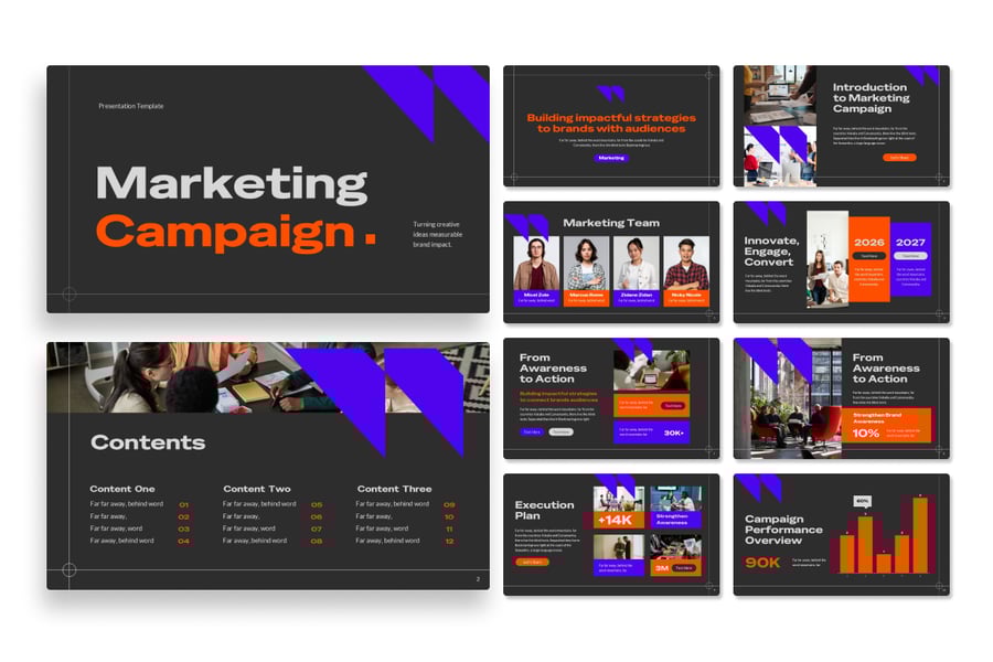 是一款创意风格的演示文稿模板,非常适合用于营销活动、广告、战略、研究、概述、品牌、品牌推广、项目提案等多种用途。