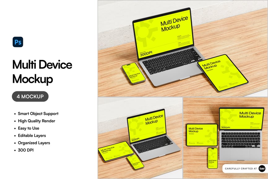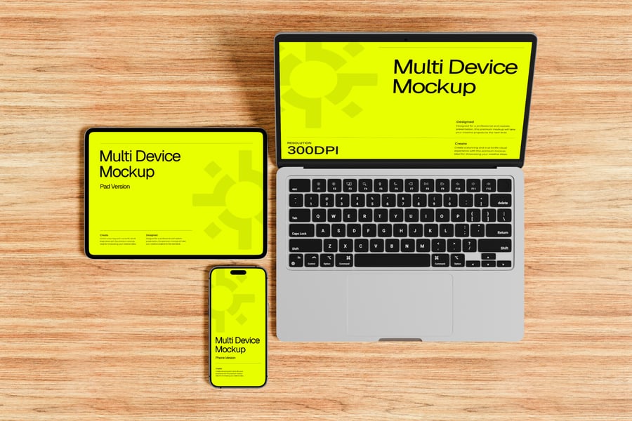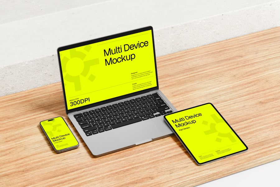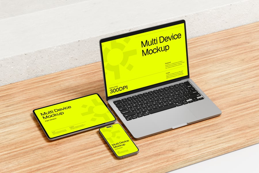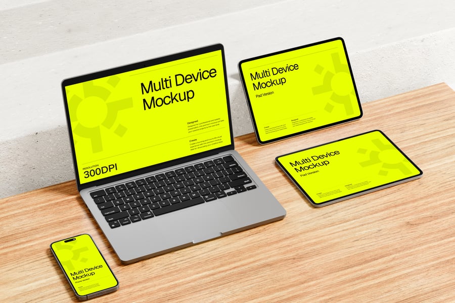 如果您需要高清多设备模型,那么您来对地方了。此套装包含 4 个高质量渲染的 .jpg 格式多设备模型,可显著提升您的项目效果。