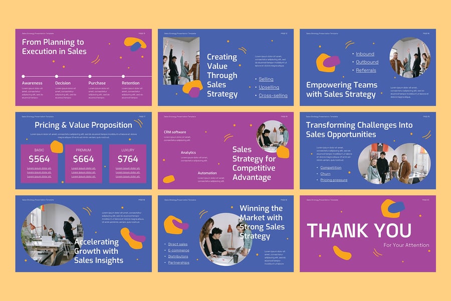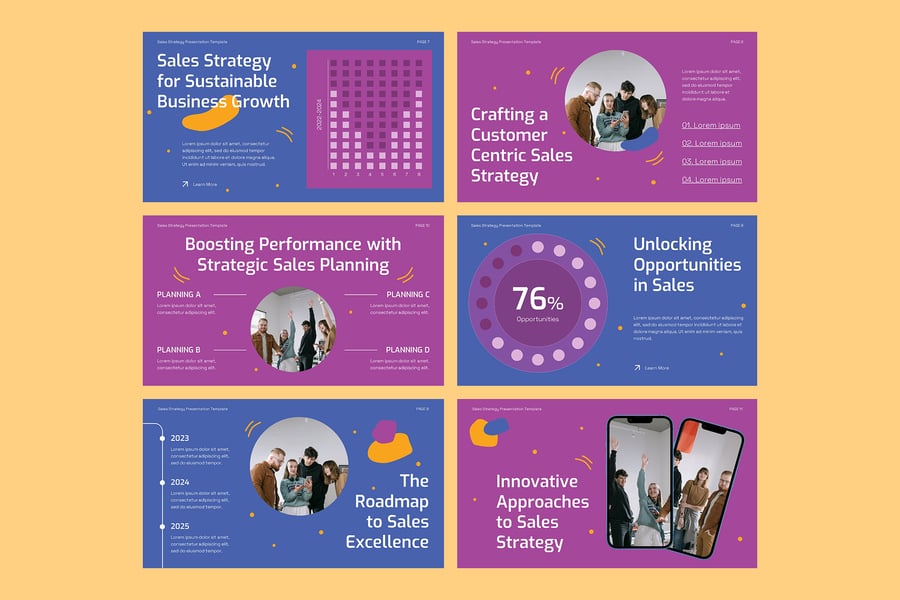 **应用场景:** 营收增长、业务战略、销售方案、销售渠道预测、销售计划、业务拓展、客户获取、销售演示文稿、业绩报告、营收规划、竞争分析、销售漏斗、现代商务幻灯片、PowerPoint模板、Keynote、Google幻灯片、销售提案、企业增长