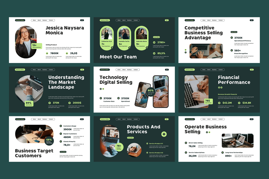 这款模板采用现代大胆的布局、简洁的字体和多功能的图表元素,助您打造引人注目、效果显著的演示文稿。模板完全可编辑,您可以自定义颜色、图表、图像和图标,使其与您的品牌形象完美契合。无论您是向潜在买家、投资者还是合作伙伴进行演示,这款商务销售演示模板都能确保您的信息具有说服力、专业性强且视觉效果出色。