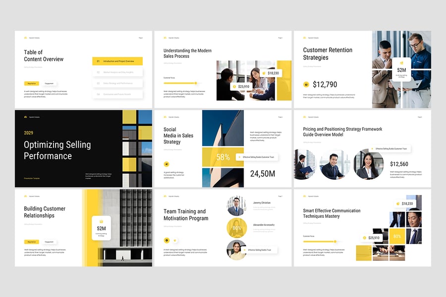 简洁的字体、统一的风格以及完全可编辑的矢量图形,让您可以轻松调整颜色、图表和内容,使其与您的品牌形象完美契合。无论您是向客户、投资者还是内部利益相关者进行演示,此模板都能提升您的信息传递效果,并增强销售故事的说服力。