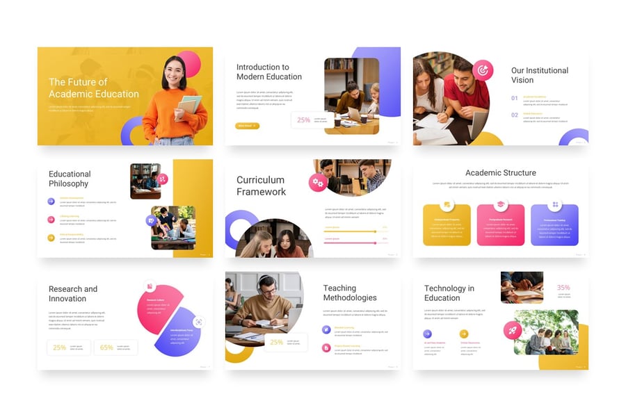 **学术教育 PowerPoint 演示文稿**,采用创意主题。此模板可满足您的各种演示需求,提供多种主题和用途,并允许您更改文本、图像和颜色。