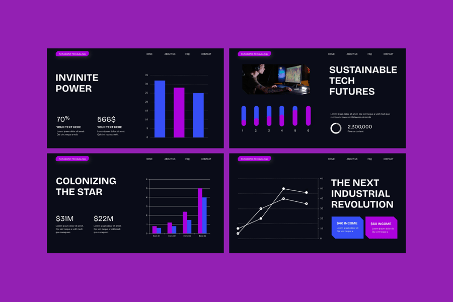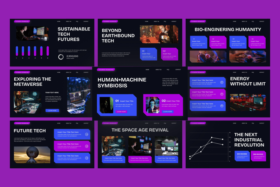 无论您是准备技术推介演示文稿、数字项目提案还是创新战略,此技术 PowerPoint 模板都能确保您的信息专业、引人入胜且面向未来。