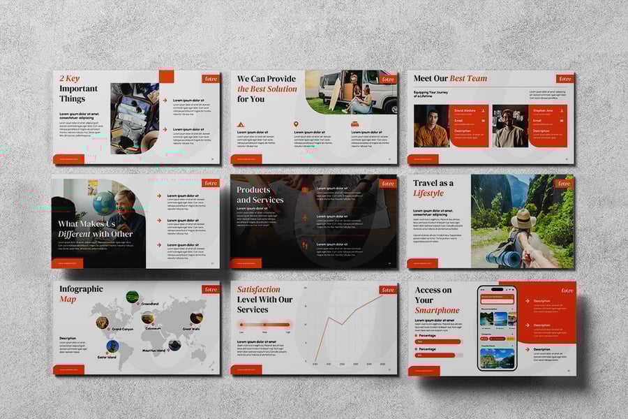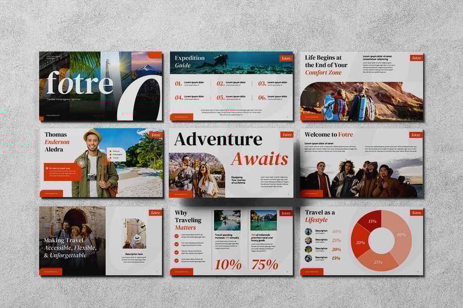 使用我们的旅行社演示模板,让您的旅行计划变得简单而精彩。该模板旨在激发您的旅行热情,并以时尚的方式展示目的地,同时还通过集成应用程序预订和安全支付解决方案,强调便捷性。无论是展示梦想之旅、旅行套餐还是团体旅游,您不仅可以突出旅行体验,还可以强调预订的便捷性。该模板非常适合希望以创意和创新给客户留下深刻印象的旅行社、旅游运营商和旅游创业公司。