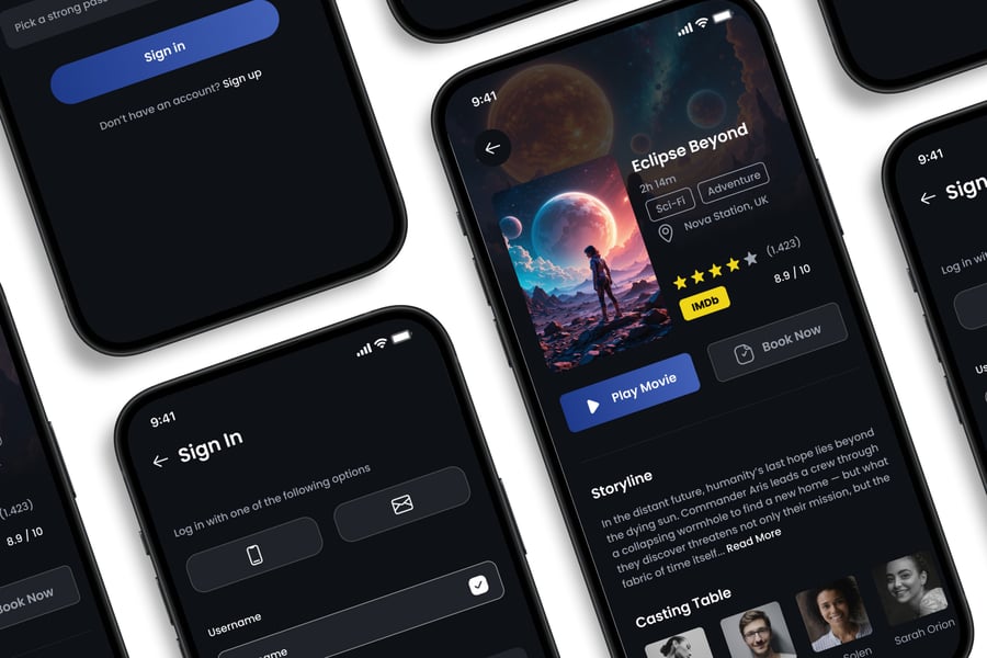 隆重推出 **Movie Play** 移动应用 UI 套件,这是一款现代化且功能全面的解决方案,可助您创建简洁易用的应用界面。对于希望加快设计流程的设计师和开发者而言,这款 UI 套件堪称完美之选,它将您所需的所有基本组件整合在一个井然有序的软件包中。