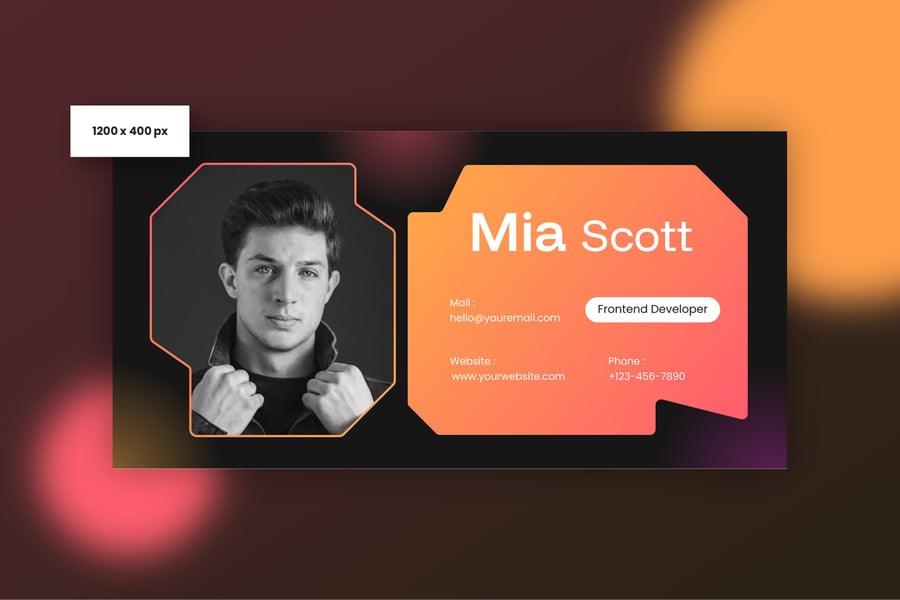 简洁专业的电子邮件签名设计,适用于商务或个人用途。一款设计提供三种不同尺寸,满足您的多种需求。现代、优雅、简洁的设计风格,令您的电子邮件签名更显专业。