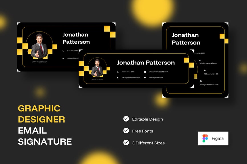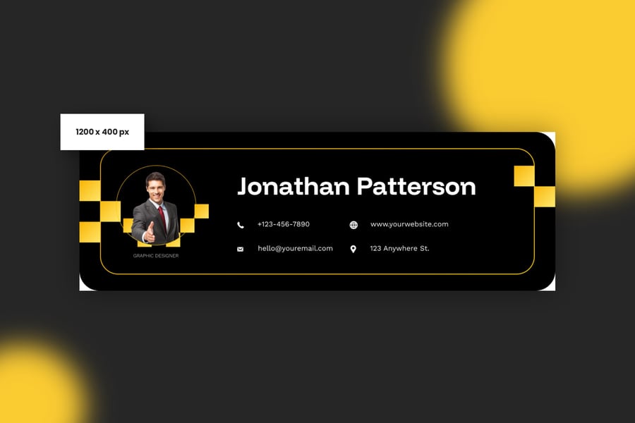 简洁专业的电子邮件签名设计,适用于商务或个人用途。一款设计提供三种不同尺寸,满足您的多种需求。现代、优雅、简洁的设计风格,令您的电子邮件签名更显专业。