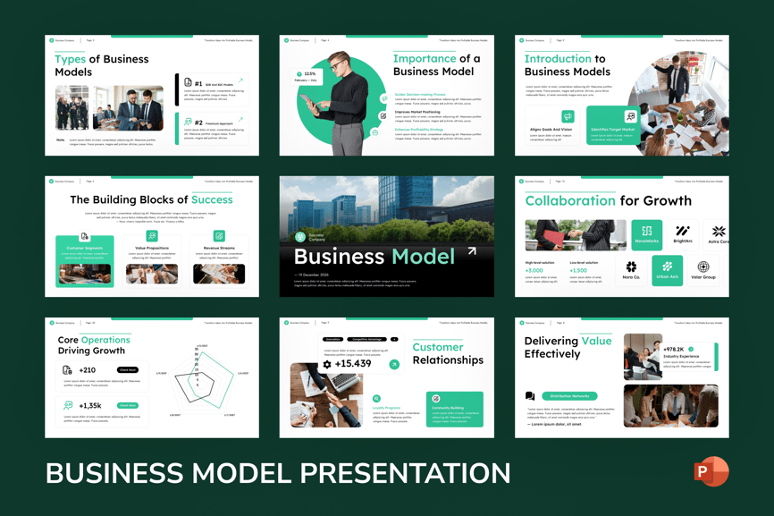 使用商业模式 PowerPoint 演示模板,清晰自信地展示您的业务战略。这款专业现代的演示文稿旨在帮助企业家、初创公司和企业团队有效地将他们的商业理念、运营计划和价值主张可视化。该模板拥有完全可编辑的幻灯片、简洁的布局和信息图表式的视觉效果,让您轻松展示商业模式画布、市场分析、收入来源和竞争策略。无论您是向投资者进行路演、展示新的商业理念,还是制定增长战略,这款 PowerPoint 模板都能确保您的演示文稿简洁、一致且极具影响力。