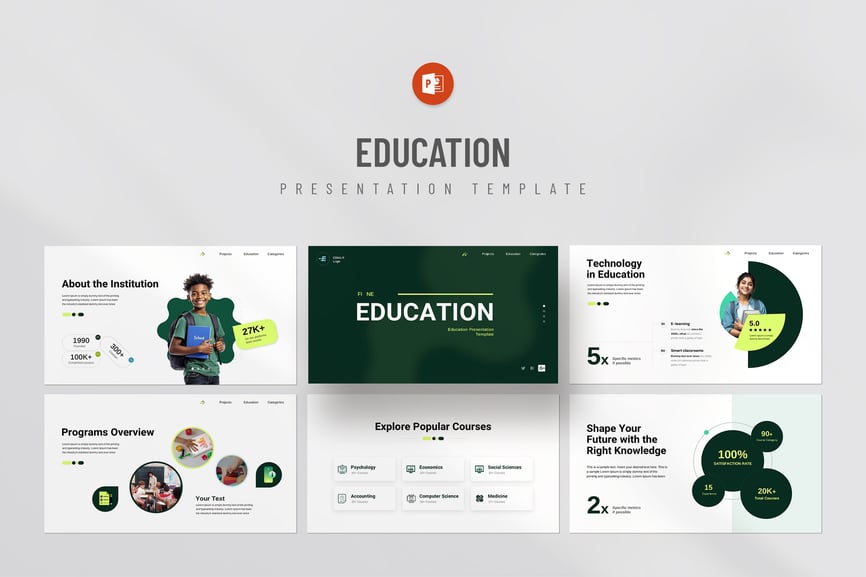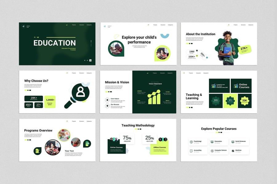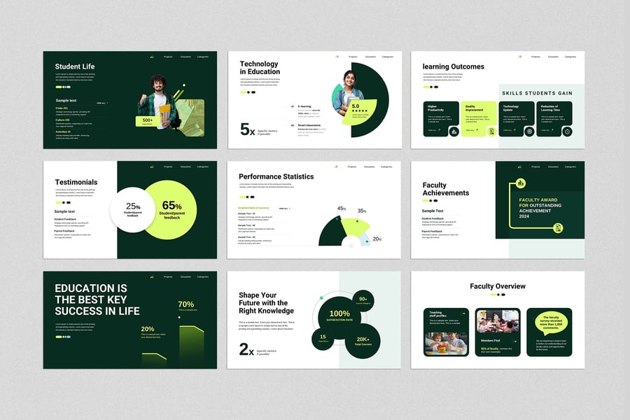 这款教育演示模板专为新一代教师和教育工作者设计。其现代化的设计风格