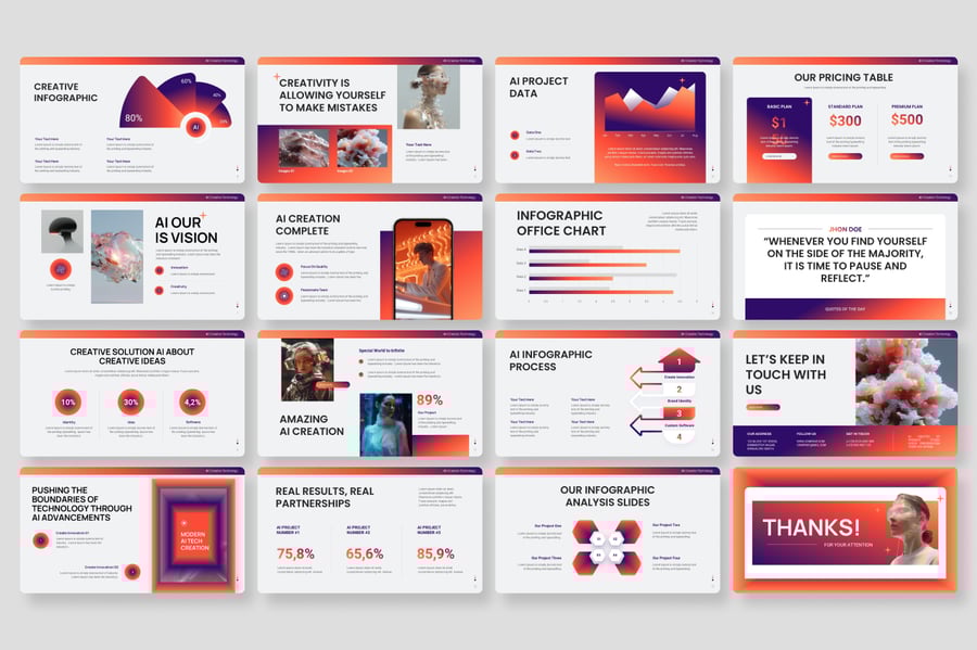 使用**人工智能创新技术 PowerPoint 演示模板**,突出您的前沿理念。该模板专为现代科技专业人士设计,融合了简洁的布局和未来感十足的视觉效果,助您展示人工智能、机器学习和数据驱动技术领域的创新成果。每张幻灯片都旨在清晰传达复杂信息,是初创公司、科技公司和创新者自信展示其解决方案的理想之选。