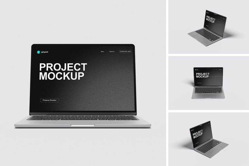 用这些精美的高清笔记本电脑模型展示您的设计。此模型包含 4 个元素,并提供分层清晰的 PSD 文件。此外,该模型还采用了智能对象功能,这意味着您只需几秒钟即可轻松快捷地将当前设计替换为您自己的设计。