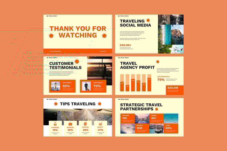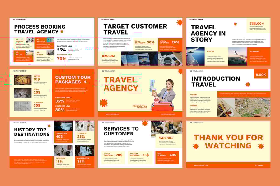 此模板包含现代化的布局、高质量的旅行图片和引人入胜的信息图等关键部分,让您能够以赏心悦目且条理清晰的方式轻松展示您的产品和服务。它非常适合用于代理机构提案、客户演示、营销活动和旅行推广,并允许您自定义颜色、字体和视觉元素,以匹配您的品牌形象和风格。