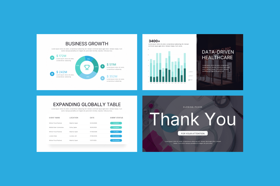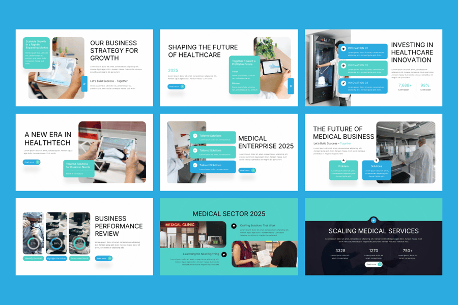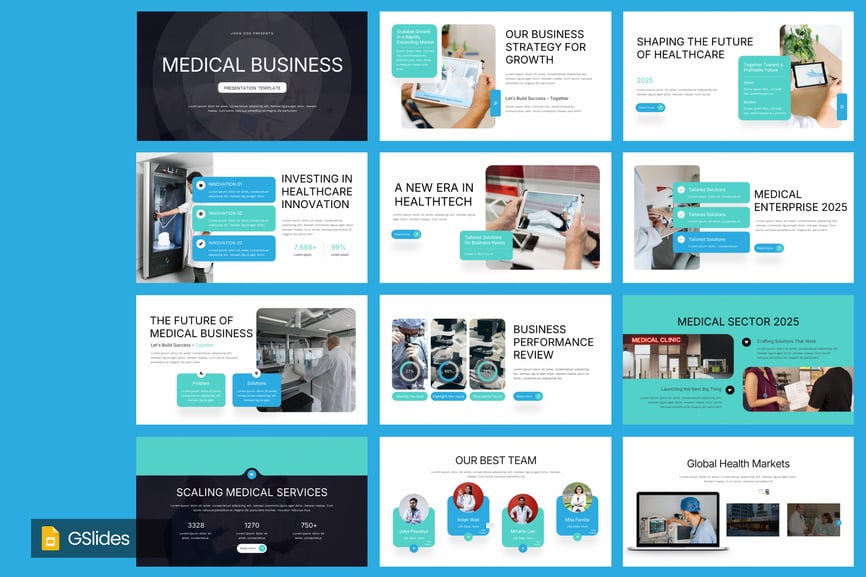 现代医疗商业谷歌幻灯片模板——简洁、专业、易于编辑。