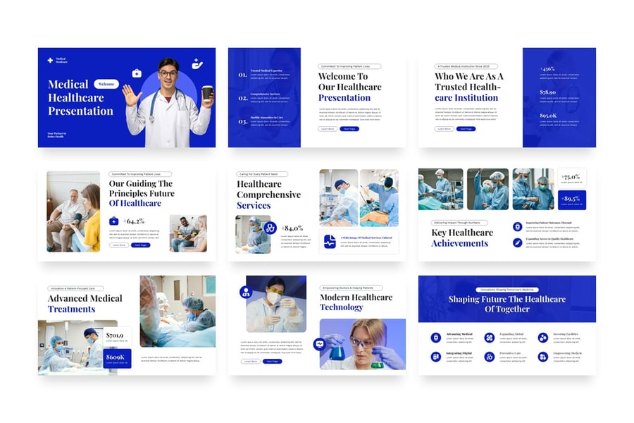 **医疗保健主题演讲模板**,采用创意主题。此模板可满足您的各种演示需求,提供多种主题和用途,并允许您更改文本、图像和颜色。