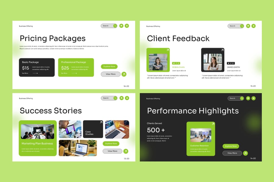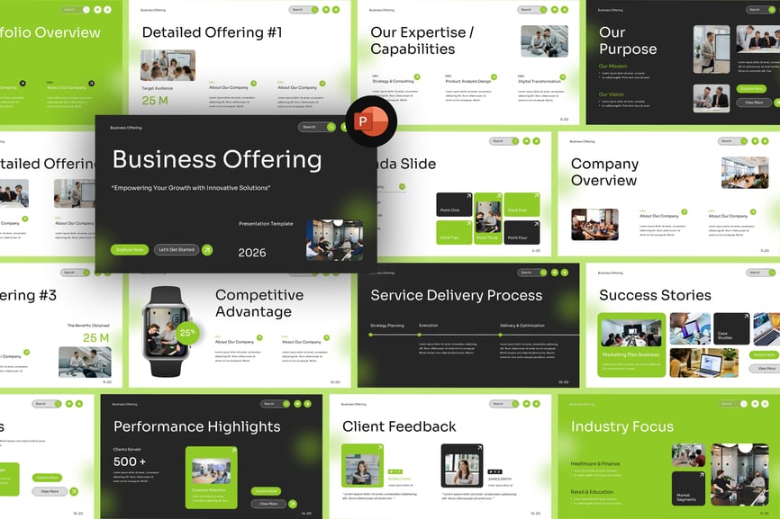 这款商务产品展示 PowerPoint 模板设计现代简洁,极具策略性,专为希望有效展示产品、服务和业务解决方案的企业家、代理机构和企业团队量身打造。该模板能够帮助您以专业且引人入胜的方式传达公司的产品、价值主张、定价和竞争优势。无论是客户提案、业务推介、销售会议还是市场营销演示,它都能确保您的受众清晰了解贵公司脱颖而出的原因。
