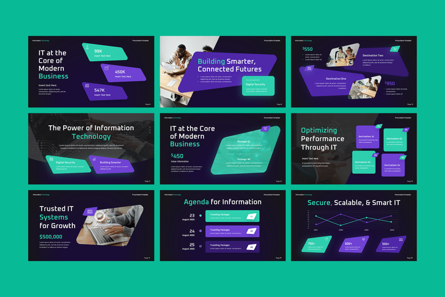 使用信息技术 Google 幻灯片演示模板,提升您的技术演示效果。这款现代化、专业且完全可定制的幻灯片模板专为 IT 公司、初创企业、软件开发商和数字机构设计。该模板包含简洁的布局、数据驱动的图表、设备模型和信息图表元素,助您清晰而时尚地展示复杂的技术信息。