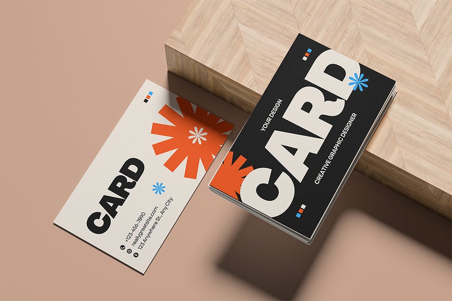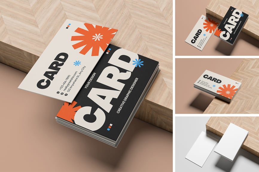 用这些精美的样机展示您的名片模型。此样机包含 3 个元素,并提供分层清晰的 PSD 文件。此外,此样机还采用了智能对象功能,这意味着您只需几秒钟即可轻松快捷地将当前设计替换为您自己的设计。
