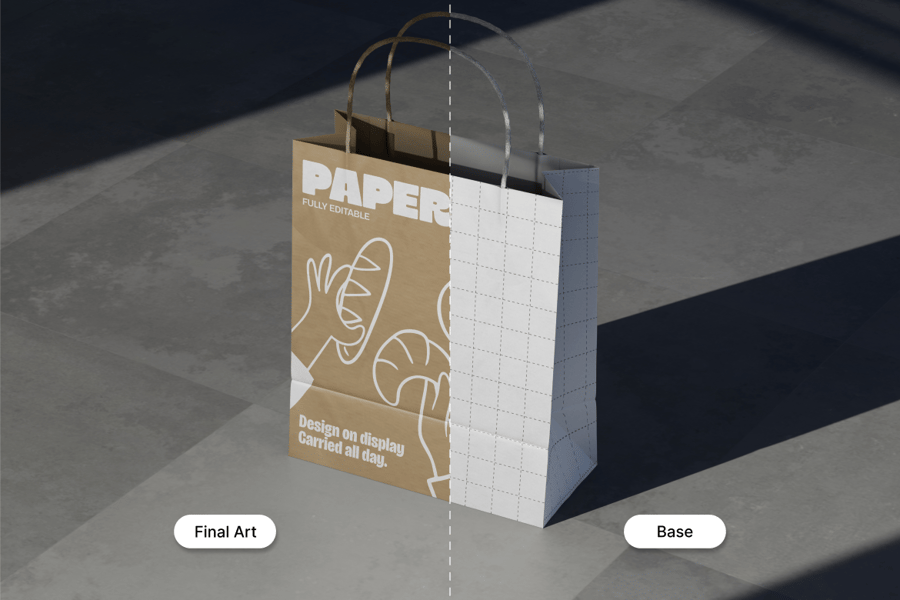 这款高品质奢华购物纸袋样机旨在打造精致的包装和品牌体验,并着重突出零售效果。场景中,一个购物袋置于简洁的摄影棚环境中,使您的产品设计成为视觉焦点。柔和的灯光和逼真的表面触感营造出自然的阴影深度,增强了真实感,同时又不会分散注意力。