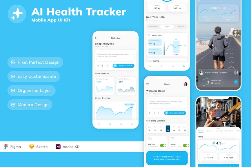 每个屏幕都可完全自定义,易于使用,并针对 Figma、Sketch 和 Adob​​e XD 进行了精心设计。