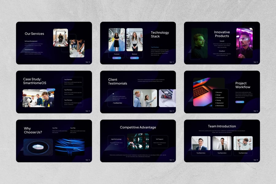此演示模板可用于各种用途,例如:创意机构、公司简介、企业和商业、作品集、摄影、路演演示文稿、初创公司,也可用于个人作品集。