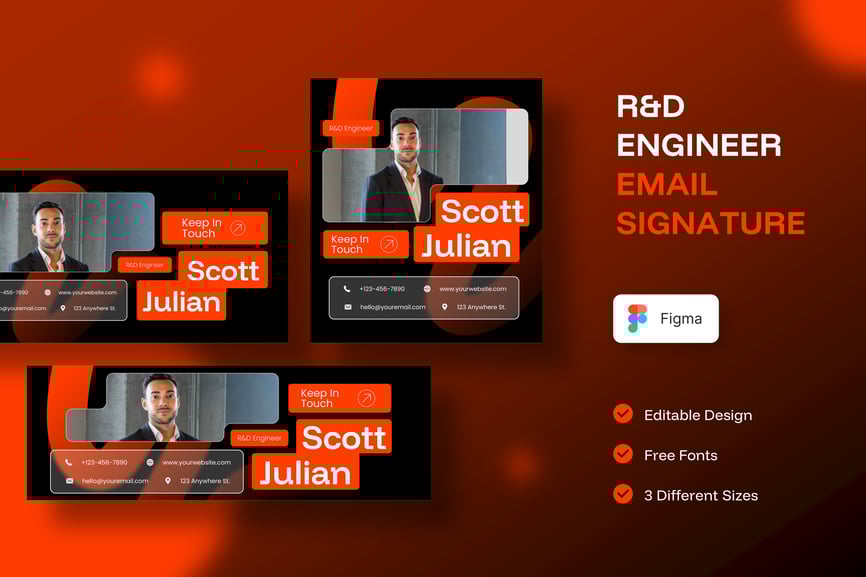 简洁专业的电子邮件签名设计,适用于商务或个人用途。一款设计提供三种不同尺寸,满足您的多种需求。现代、优雅、简洁的设计风格,令您的电子邮件签名更显专业。