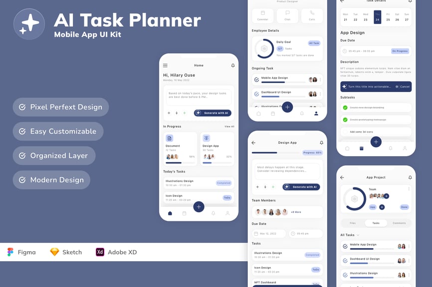 每个屏幕都可完全自定义,易于使用,并针对 Figma、Sketch 和 Adob​​e XD 进行了精心设计。