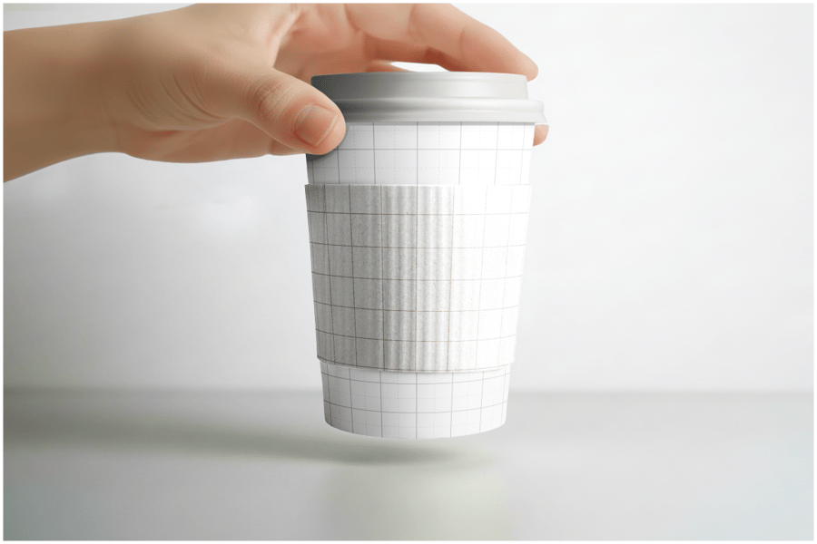 这款逼真的PSD样机展示了一只手持的外带咖啡杯,杯身饰有时尚的图案设计,并采用亮蓝色杯套。样机包含多个视角视图,以及一个空白的、完全可自定义的版本,非常适合添加徽标、品牌标识或包装设计理念。简洁的摄影棚场景、细腻的纹理和高分辨率的画面,使其成为以精致专业的方式展示咖啡馆品牌、环保包装理念或现代饮料容器设计的理想之选。