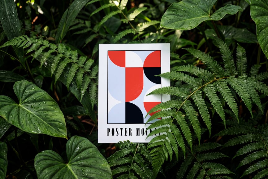 使用这款有机热带植物海报样机,以自然而精致的方式展示您的海报设计。样机以茂盛的蕨类植物和生机勃勃的丛林树叶为背景,营造出清新环保的美感,让任何作品都栩栩如生。