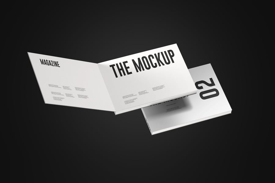 此模型展示了一个开放式的杂志版面,内页清晰可见,便于编辑设计展示。它适用于展示杂志版面布局、字体排版和印刷内容。