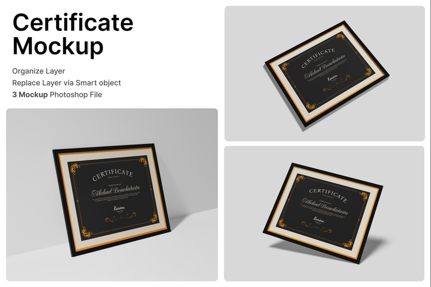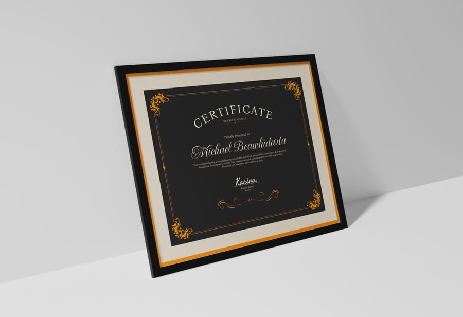 Relevance and Use Cases 非常适合用于证书模型、奖项设计展示、文凭可视化、专业认可展示、带框证书展示、PSD 模板和优雅的品牌展示。