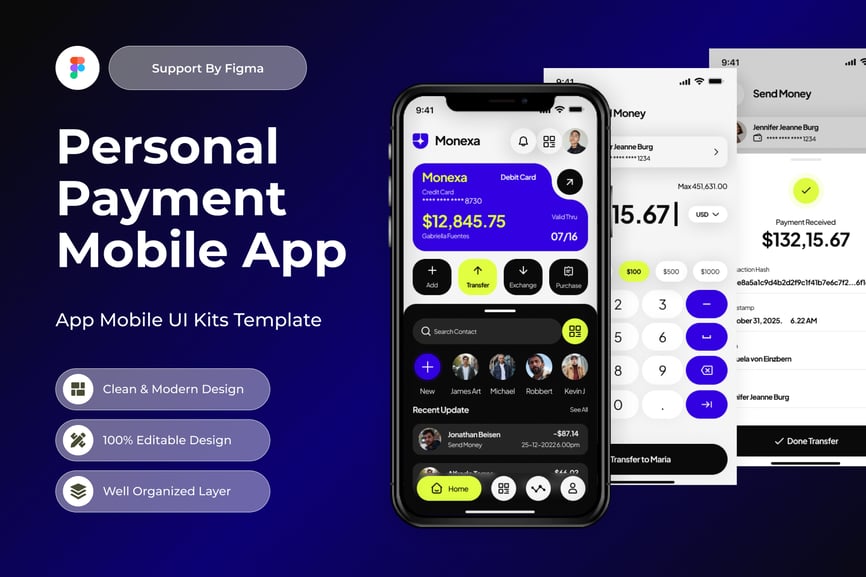 使用这款专业设计的模板,轻松打造极具影响力的个人支付移动应用。