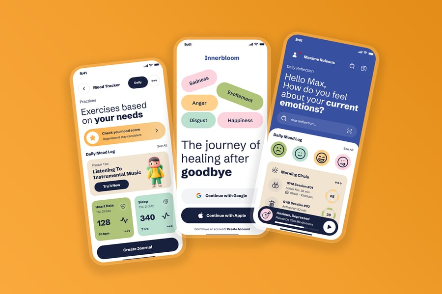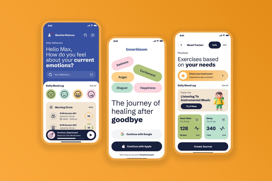 分手疗愈应用、情绪疗愈应用、心理健康应用、自我护理移动应用、心理治疗支持界面