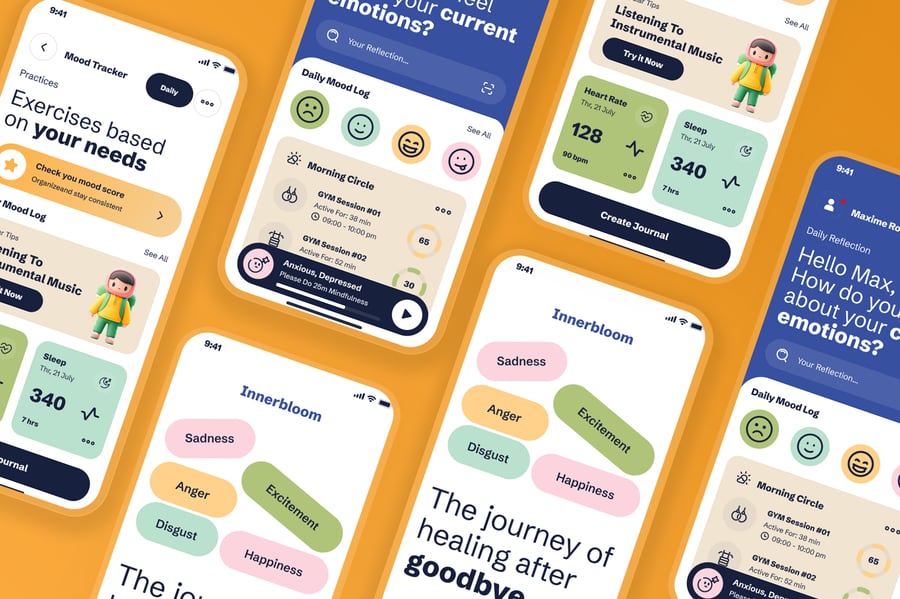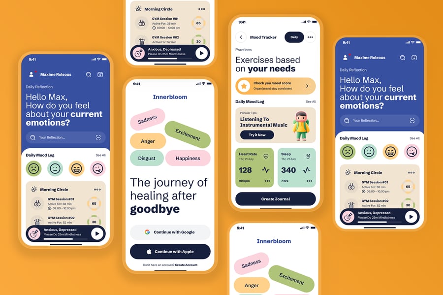 隆重推出分手疗愈移动应用 UI 套件,其精心设计的界面风格舒缓、支持性强且现代感十足,专注于情绪疗愈和自我成长。该 UI 套件可帮助设计师以温和友好的移动体验,展示情绪追踪、引导式日记、每日肯定语、冥想练习、情绪自检、进度追踪和个性化疗愈方案等功能。