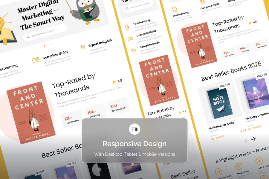 现代无衬线字体和精心设计的行动号召 (CTA) 强化了流畅的转化路径。辅助插图和图标增强了故事性,使复杂的营销概念变得通俗易懂。无论您是创业公司创始人、战略家还是教育工作者,此着陆页都能显著提升您的电子书价值,使其成为高价值的数字产品。