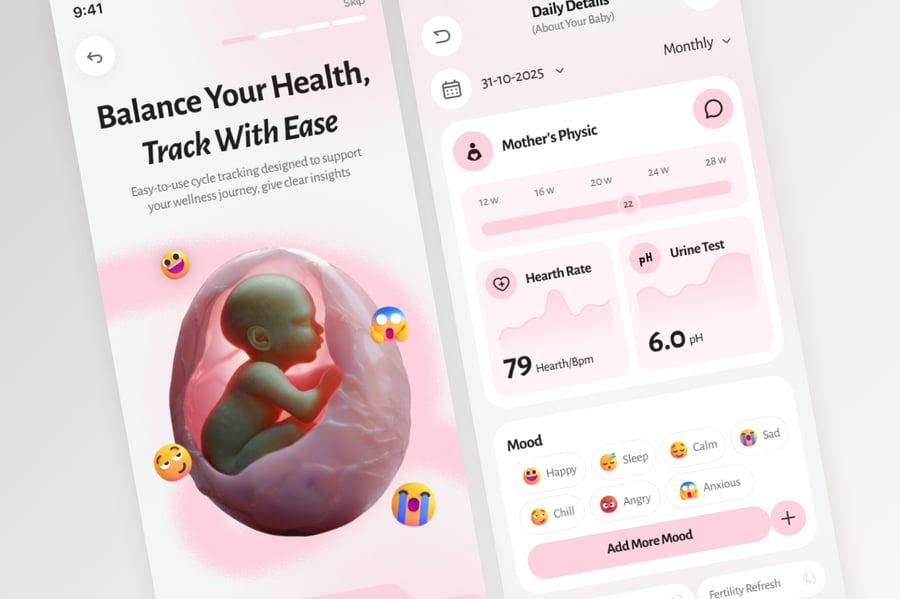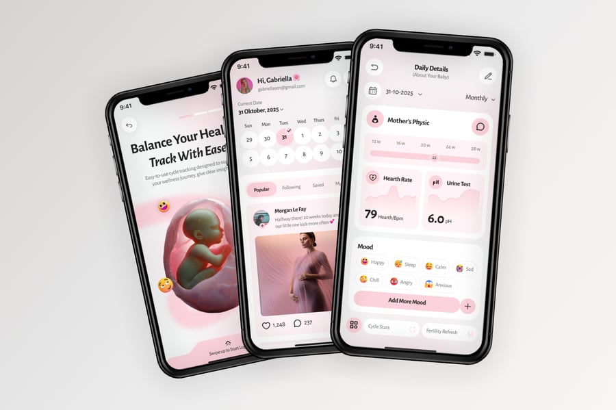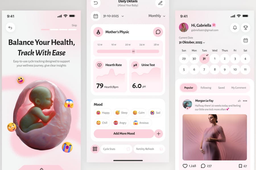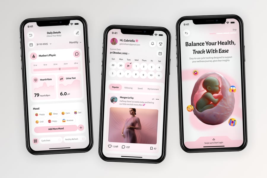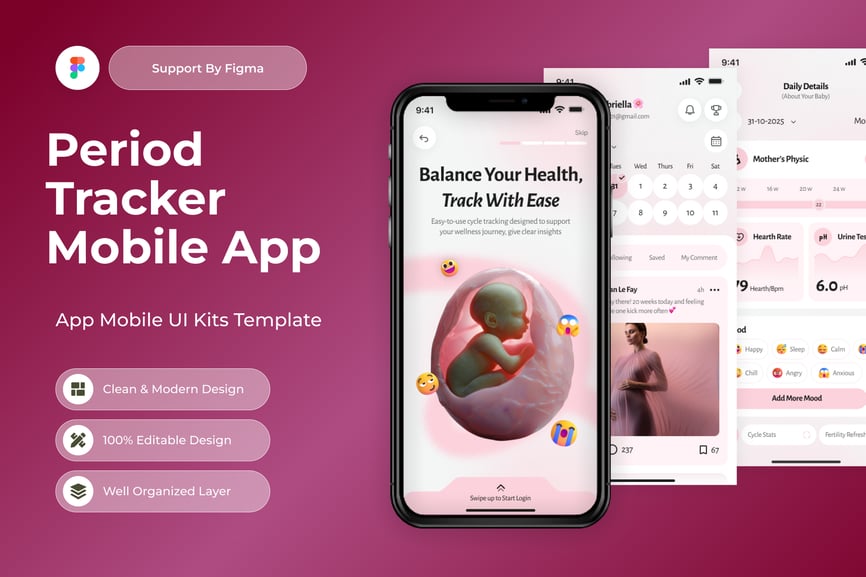 使用这款专业设计的模板,轻松打造功能强大的“经期追踪移动应用”。