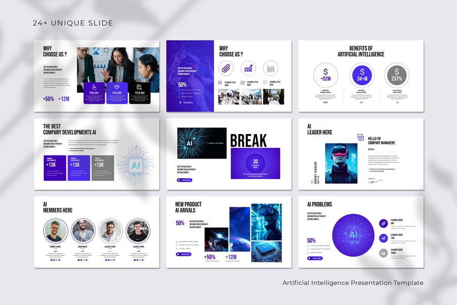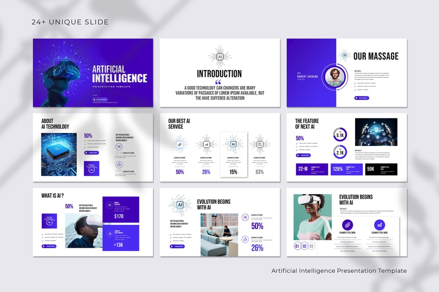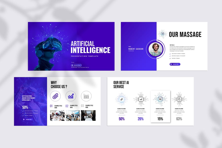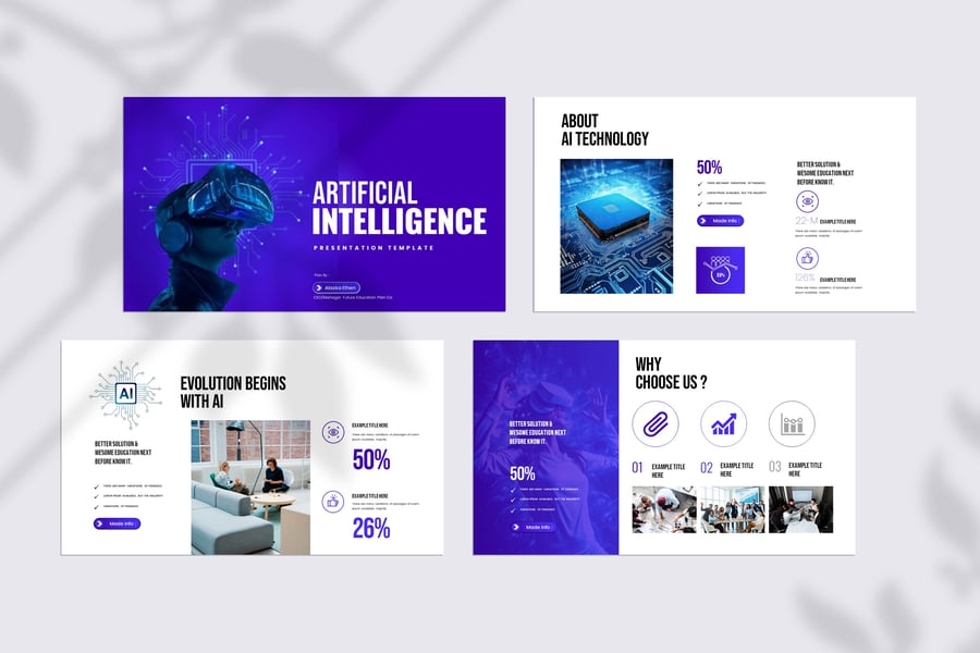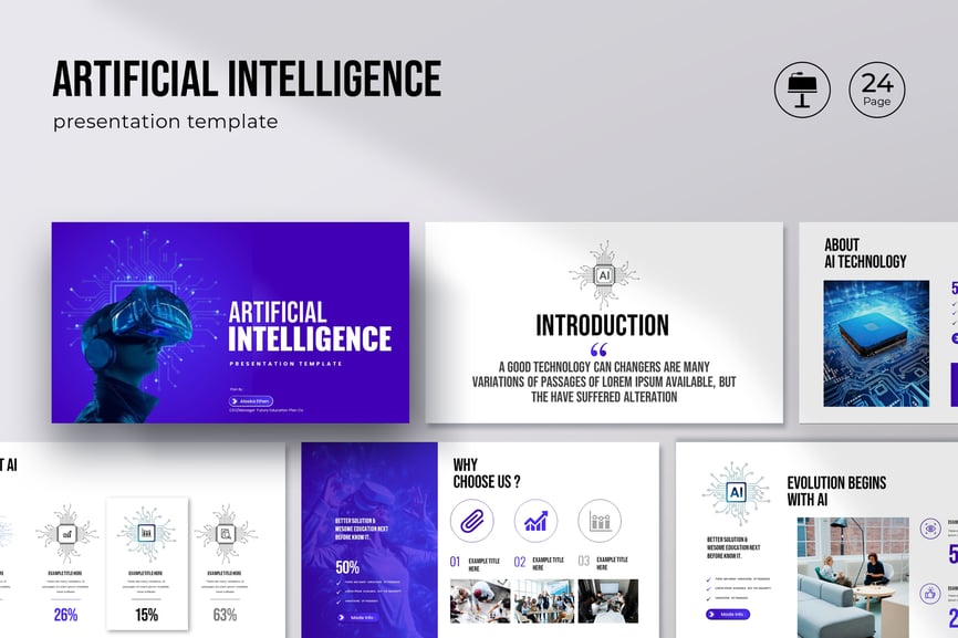 使用我们完全可编辑的人工智能模板,释放简洁专业的设计力量。这款模板完美适用于演示文稿、项目路演、企业报告和科技创业公司简介,旨在帮助您清晰有力地阐释复杂的人工智能概念。它采用现代科技美学设计,布局简洁,信息图表直观易懂,配色方案和谐统一,彰显创新精神。节省大量设计时间,几分钟即可打造令人惊艳、权威十足的演示文稿。