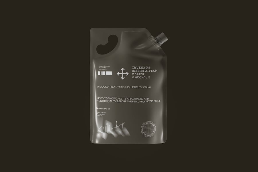 此模型展示了一款适合清晰展示产品包装设计的自立吸嘴袋。它提供简洁的布局,可有效展示标签、品牌元素和版面组合