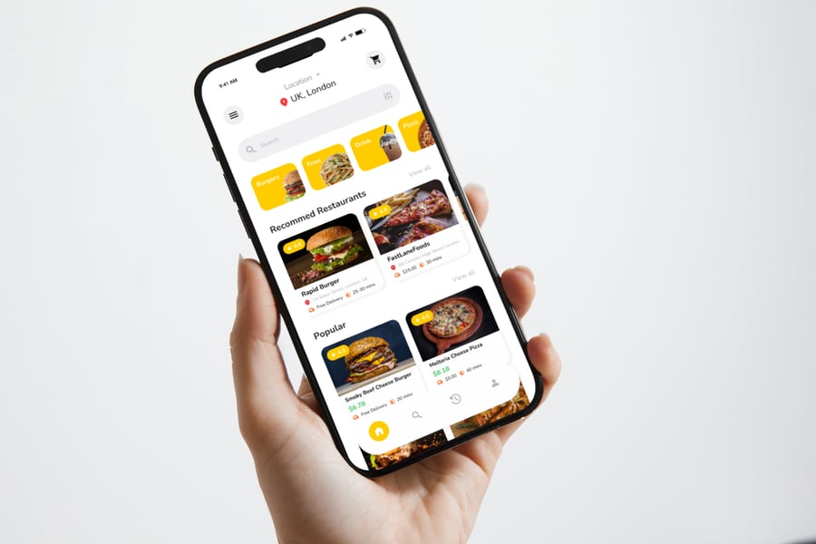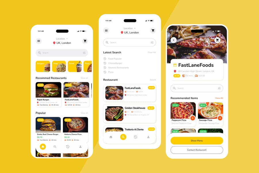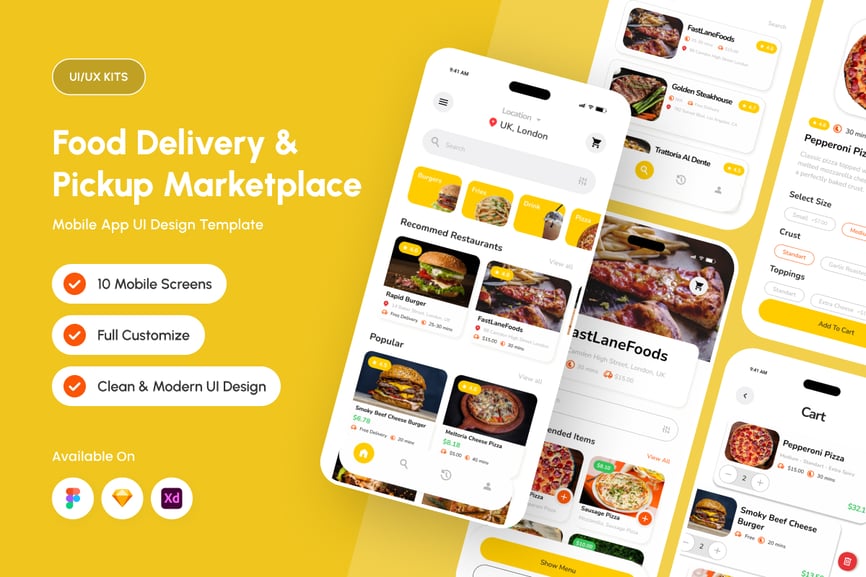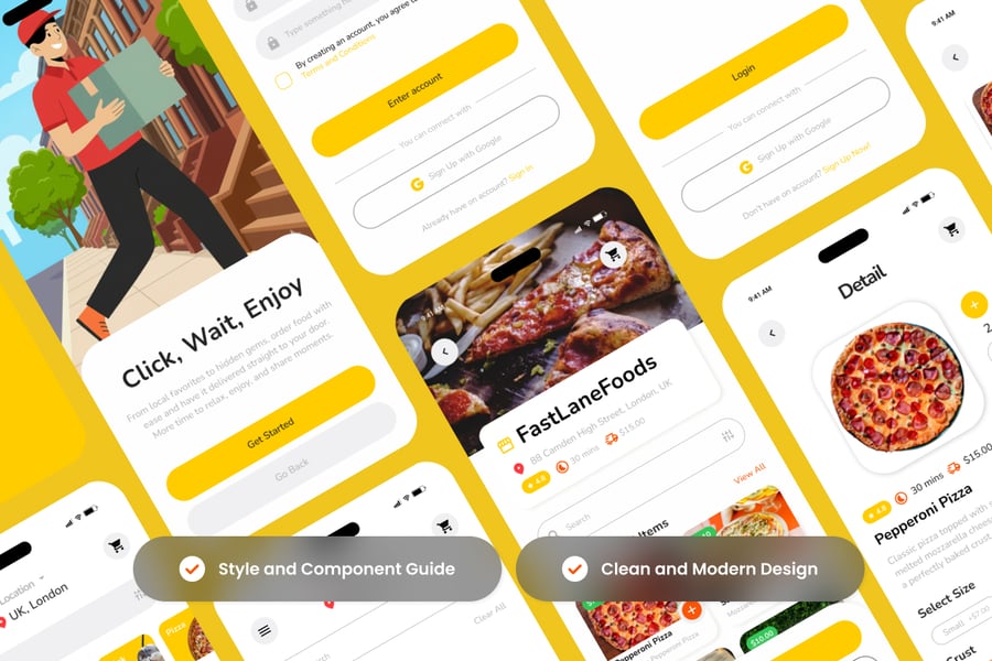 Yumicio 是一款界面明快、色彩鲜艳、阴影柔和、食物诱人的图片展示的外卖订餐应用,旨在吸引用户。该界面注重清晰度和易于点击的组件,使设计师和自由职业者能够打造轻松、现代且所有用户都能快速上手的愉悦外卖体验。