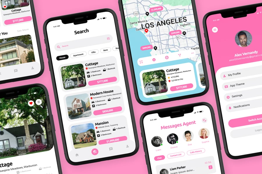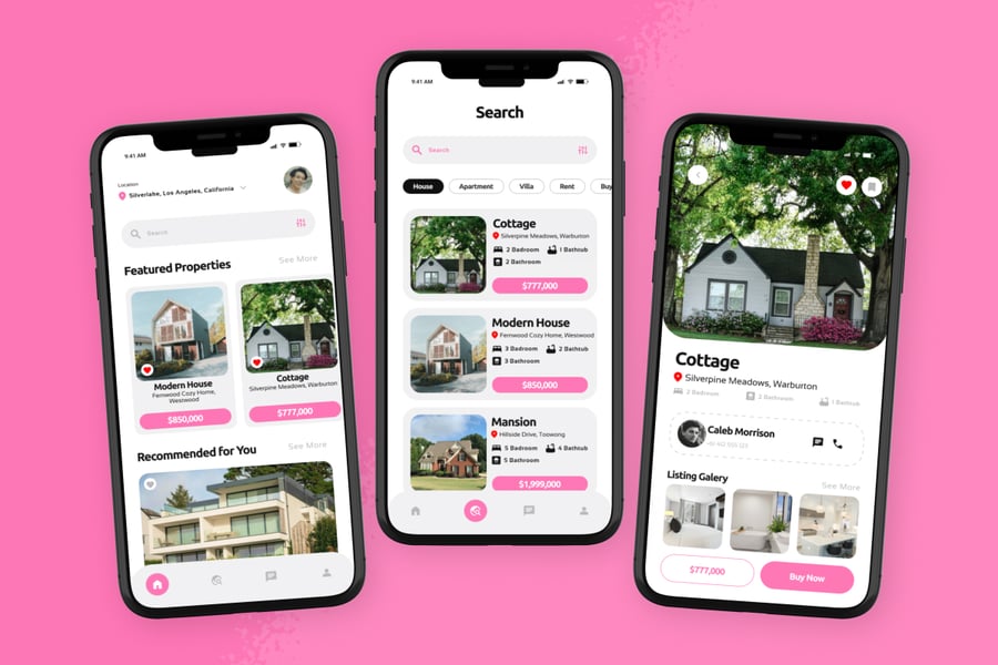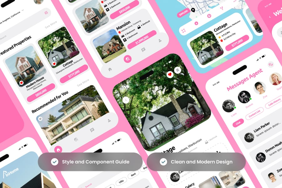 InHome 是一款现代化的房地产应用程序,其用户界面设计旨在为用户提供流畅的房屋和房产搜索体验。该设计优先考虑视觉清晰度、直观的结构以及在移动屏幕上营造的沉稳可靠的用户体验。