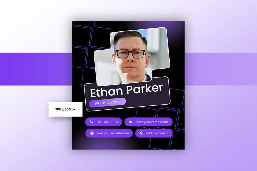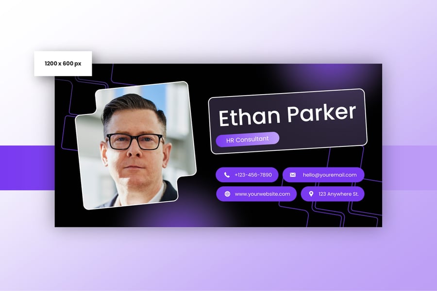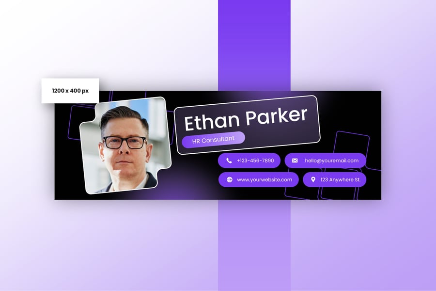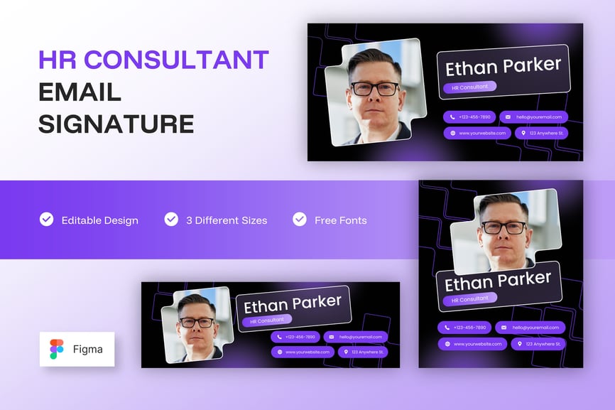 简洁专业的电子邮件签名设计,适用于商务或个人用途。一款设计提供三种不同尺寸,满足您的多种需求。现代、优雅、简洁的设计风格,令您的电子邮件签名更显专业。