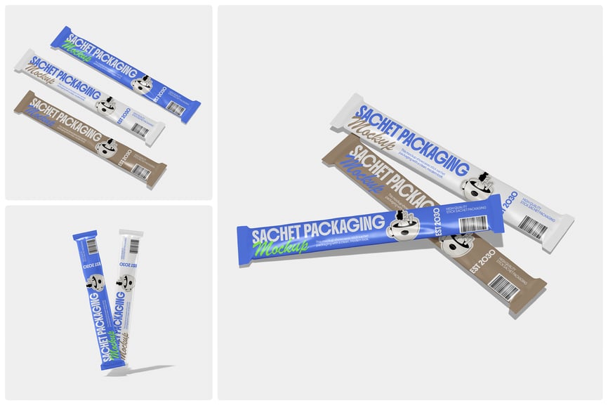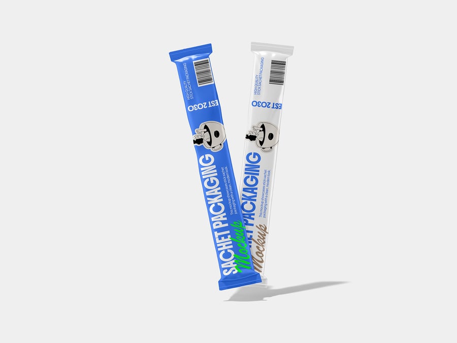 这款*条状小袋包装样机*采用简洁的工作室布局设计,可完美展示您的食品、饮料或保健品品牌。它非常适合用于速溶咖啡、甜味剂、粉末或化妆品样品,能够清晰呈现您的小袋设计,并展现自然的光影效果。