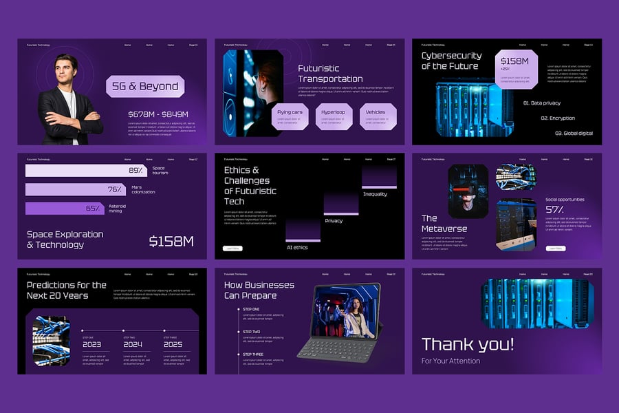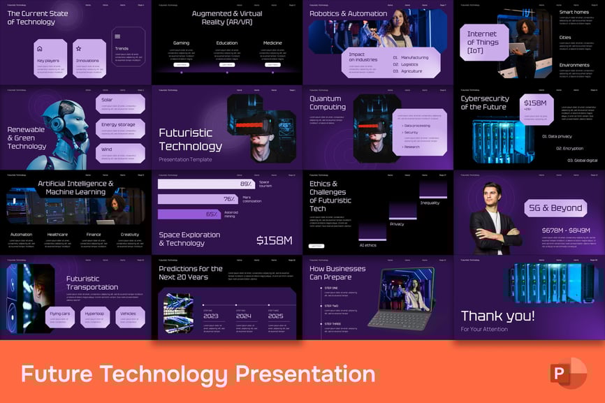 使用**未来科技 PowerPoint**,让您的演示更上一层楼。这款模板专为科技初创公司、数字机构、IT 公司和富有远见的商业领袖而设计。它采用大胆的布局、沉浸式的科幻图形、霓虹灯元素和现代用户界面风格,让您能够以前沿的视觉风格展示先进的技术概念、人工智能解决方案、数字生态系统、产品升级、数据智能和创新路线图。它完美适用于未来科技演示、人工智能路演模板、网络数字界面幻灯片、创新科技幻灯片、机器学习、元宇宙演示、VR/AR 技术幻灯片、未来科技设计模板、机器人演示、初创公司技术路演、科幻演示模板、霓虹网络风格幻灯片、技术路线图幻灯片、网络安全演示、数字创新幻灯片、未来商业演示和高科技演示。