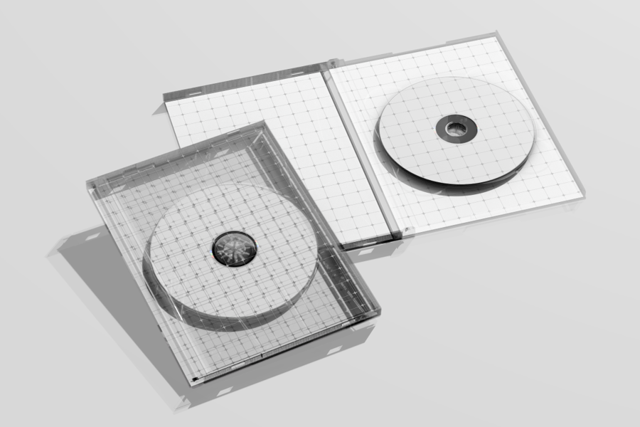 * **内容:** 一个CD盒,分别展示正面、背面和内部(含光盘)。